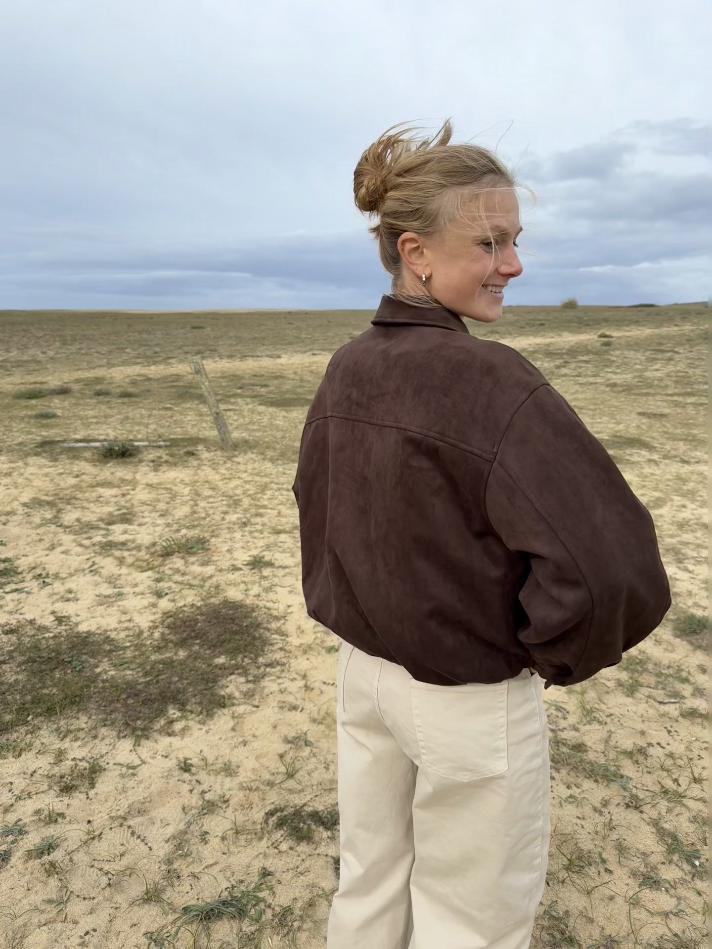 Een klassieker met een zachte twist. Deze bomber combineert de structuur van vintage werkkleding met het comfort van modern suède. De ronde schouders en losse pasvorm geven ‘m een ontspannen silhouet, precies goed tussen stoer en subtiel.